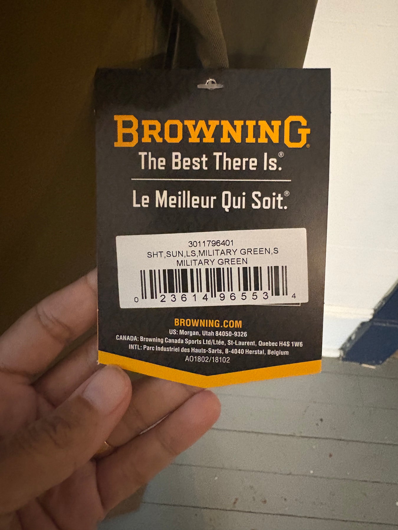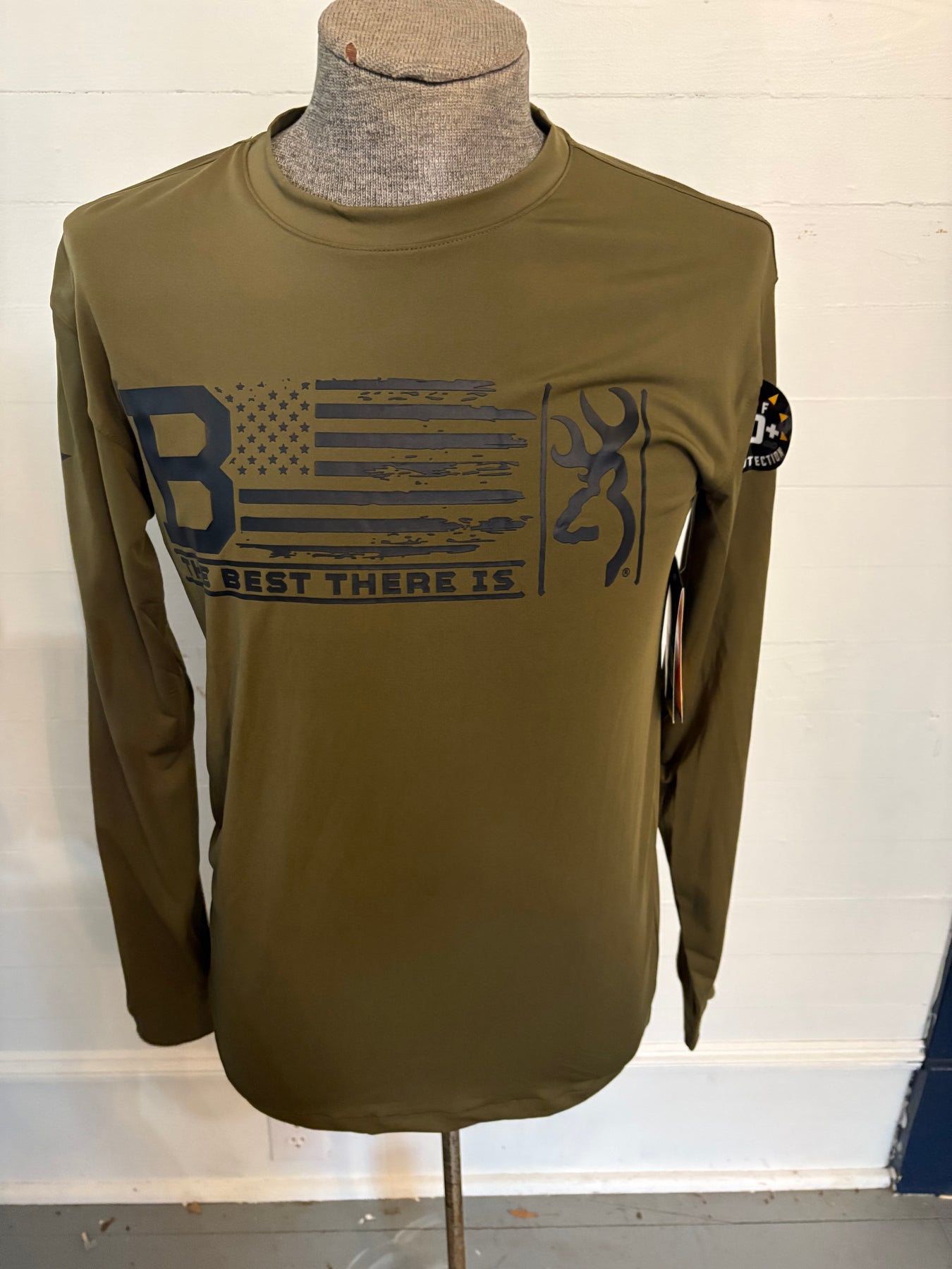 Official Browning shirt, made from a light weight material. It is wind and water resistant and comes in a hunter green color.