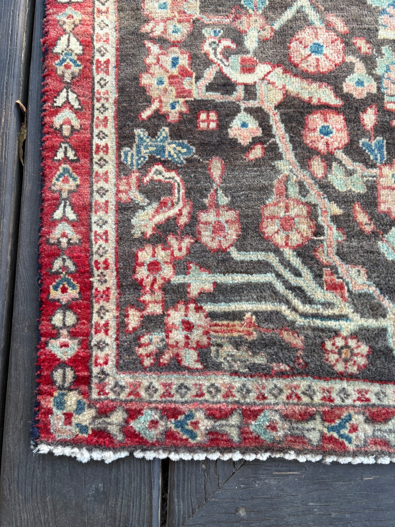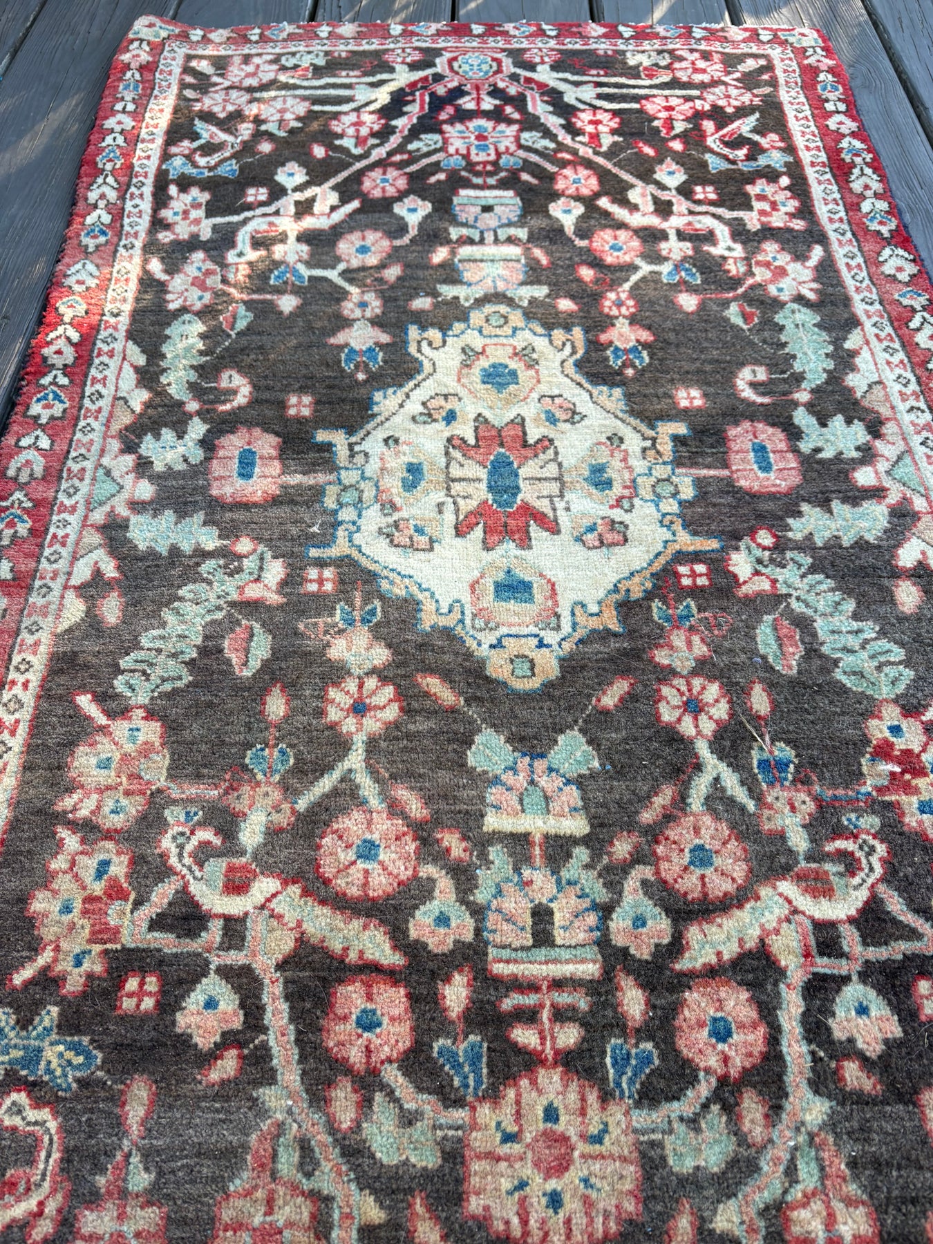 This rug is vintage. Please refer to photos for condition. We do our best to photograph these rugs in natural and artificial light but colors may appear different from what is shown on your screen. All of our rugs and pillows are vintage and/or antique. Due to their hand made nature and age, rugs may show discrepancies such as, repairs, tears, holes, wear, fading, discoloration, odor etc. We respect the character and history of our textiles, and do not consider these defects.